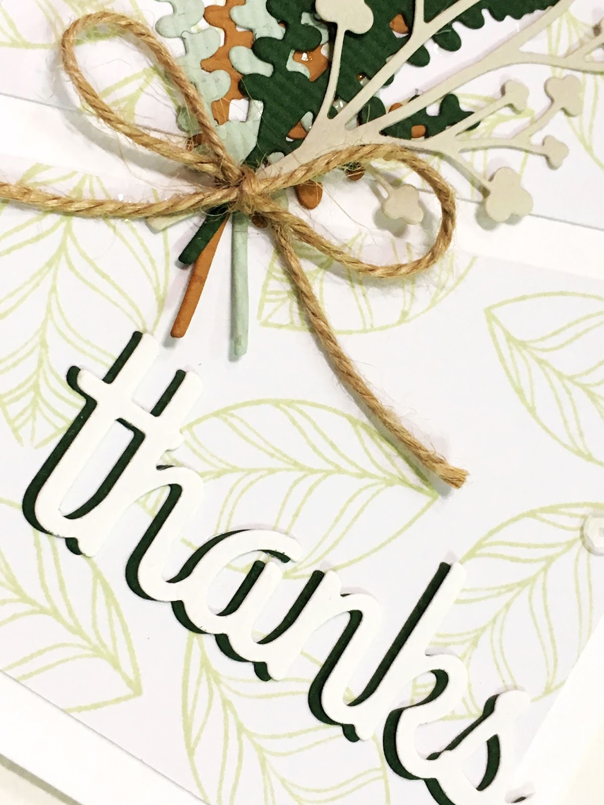首先,用淺綠色印台蓋印葉子(from PRETTY POSIES)在白色卡紙上,就可以做出獨一無二的背景紙。