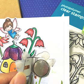 I chose the "fairy friend" as my battery cover door and then adhered velcro tape to the back of "fairy friend" and my background.